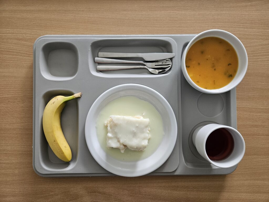 Śniadanie: herbata b/z cukru 250 ml chleb razowy krojony 100 g (GLU, JAJ, ZIA) masło 82% tłuszczu 10 g (BIA) pomarańcza 0,5 szt szynka drobiowa . 50 g (BIA, GLU,SOJ, SEL, GOR) jogurt naturalny 150 g (BIA) | Obiad: Zupa owocowa z truskawkami 300g (GLU, JAJ,SOJ, ZIA) ziemniaki z koperkiem 200 g kalafior z bułką tartą i tłuszczem 150 g (GLU) sos koperkowy 100 ml (GLU, SOJ, SEL, GOR) Pulpet wieprzowy 90 g (GLU, JAJ, SOJ, SEL, GOR, ZIA) |