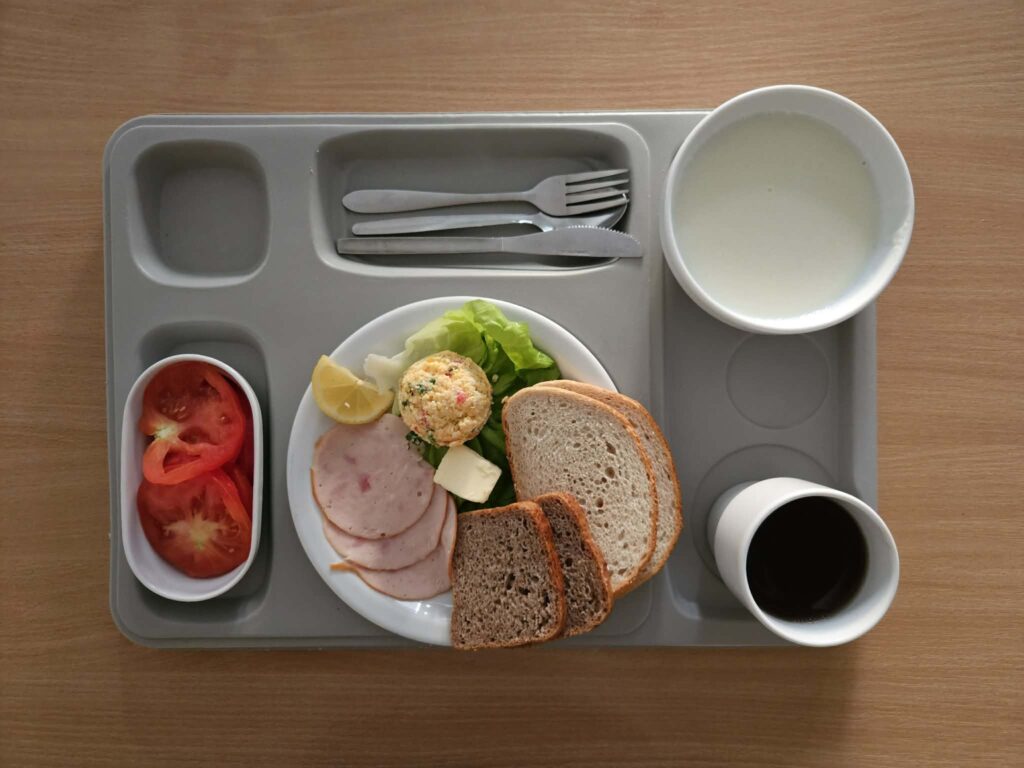 | Śniadanie: zupa mleczna z ryżem 300 ml (BIA) herbata z cytryną 250 g pieczywo mieszane pszenno-żytnie 50 g (GLU, JAJ, ZIA) pieczywo razowe 50 g (GLU, JAJ, ZIA) sałata 20 g masło 82% tłuszczu 15g (BIA) twaróg ze szczypiorkiem 70 g (MLE) pasztet drobiowy z blachy 40 g (GLU, JAJ, MIĘ, SOJ, SEL, GOR ) pomidor z pestka dyni 150 g | Obiad: Zupa kalafiorowa z zieleniną i makaronem 300 ml (GLU, JAJ, SEL) Ryba panierowana(morszczuk) 120 g (GLU, JAJ,RYB) ziemniaki z koperkiem 200 g (BIA) kompot owocowy 250 g surówka z kapusty kiszonej i olejem rzepakowym 150 g |